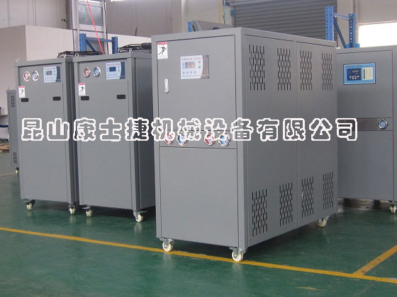 電鍍行業用電鍍冷水機: 種類電鍍液冷卻,使金屬、非金屬分子穩定.冷水機使金屬分子隨著穩定的電流快速貼附上鍍件表面,增加鍍件的密度和平滑,縮短電鍍周期,提高質量,并可有效地回收化學物質,工業制冷設備同理也適用于真空鍍膜工業 。A.直接冷卻:即鍍液直接通過過濾機或是過濾網進入冷凍機的蒸發器進行降溫再回到氧化槽。此冷卻方式的優缺點:冷卻時間短、效果好;缺點就是蒸發器需要做防腐處理(一般采用鈦合金),蒸發器里容易結垢,需定期清洗,否則影響制冷效果和機器運行。B.間接冷卻:氧化槽里鋪置鈦管,冷凍水通過鈦管帶走渡液熱量達到降溫目的;若鋪鈦管不便可添一換熱器(需是鈦合金制成)一邊走冷凍水一邊走鍍液。