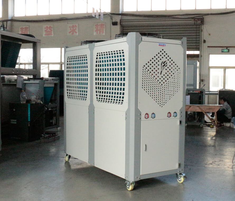 發泡專用制冷機組作用:發泡制冷機組用于發泡設備冷卻,提高制品表面光潔度,減少塑料制品表面紋痕和內應力,使產品不縮水、不變形,便于脫模,加速產品定型,從而提高生產效率。